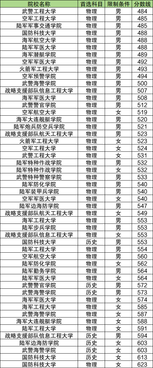 陆军边海防学院最低分数线:历史类603分(女)、物理类547分(男)。