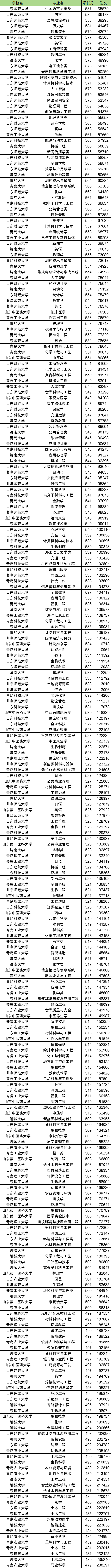 2025年山东地方专项计划最低录取分数线位于479分到587分之间,收分最低的为青岛农业大学(马业科学),最低位次是238291名;收分最高的是山东师范大学(中国语言文学类),最低位次是35579名。