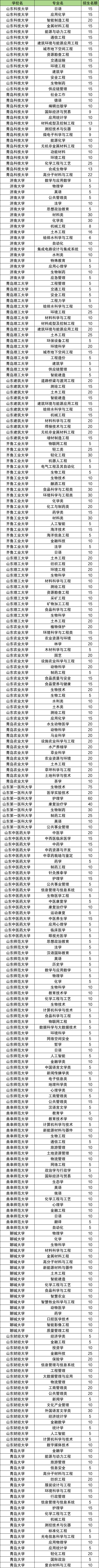 二、山东地方专项计划大学及专业名单