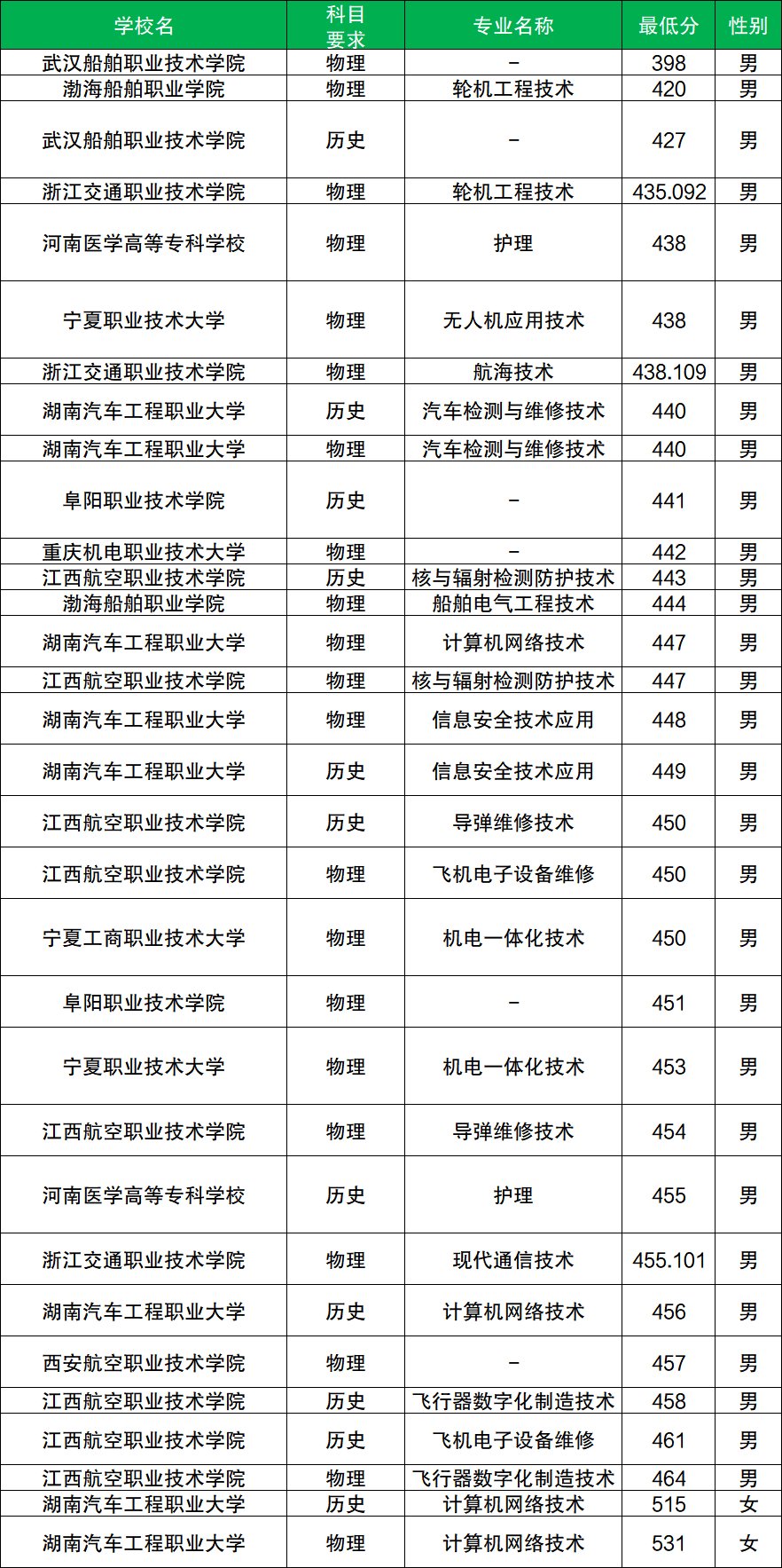 长沙航空职业技术学院:历史类最低445分、物理类最低455分