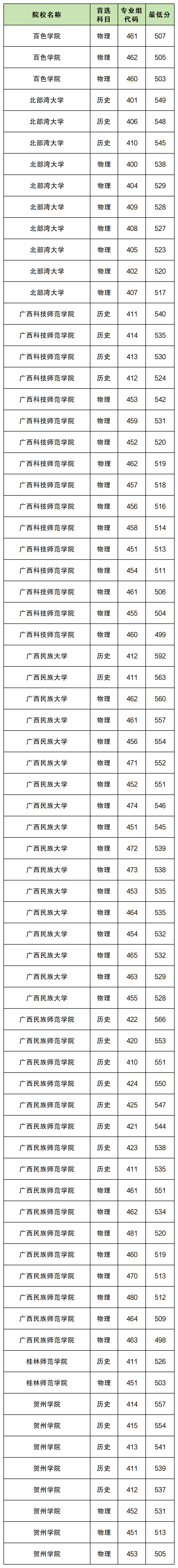 1、广西师范大学2025年最低分:物理类是532分、历史类是559分。