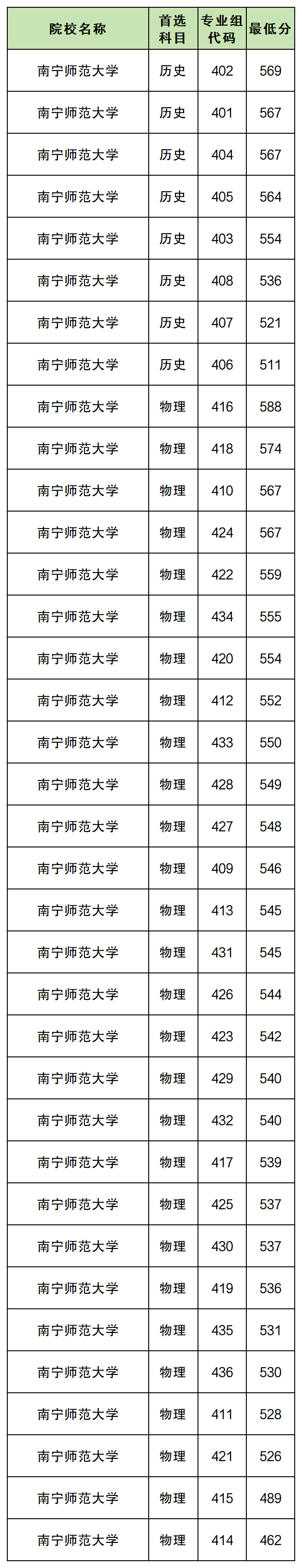 3、南宁师范大学2025年最低分:物理类是462分、历史类是511分。