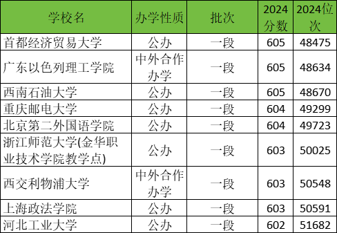 浙江成绩排名5万能上的大学具体位次为:48475名-51682名,共有9所,对应分数为605分-602分。