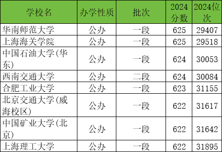 因为招生院校众多,不能展示全部成绩排名对应的大学名单,本文就以位次1万名、3万名、5万名,供2025年考生参考。