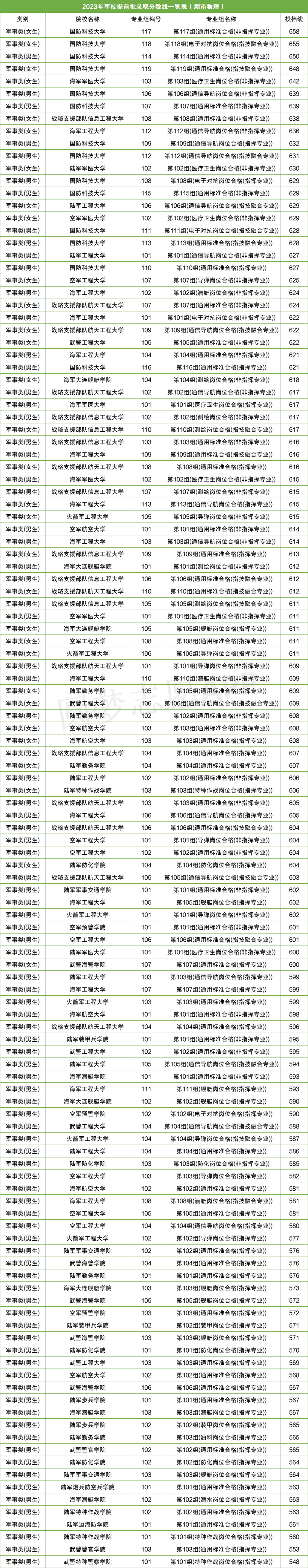 五.2023年湖南军校最低录取分数线一览表