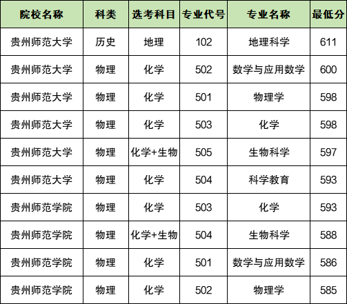 | 本科提前批C段 | 物理/历史类均招 | 贵州师范大学 |