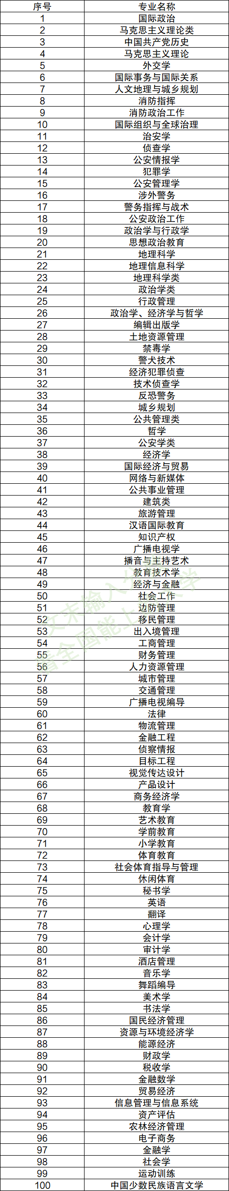 以下是一些其他物政地可以报考的100个专业,供各位参考。