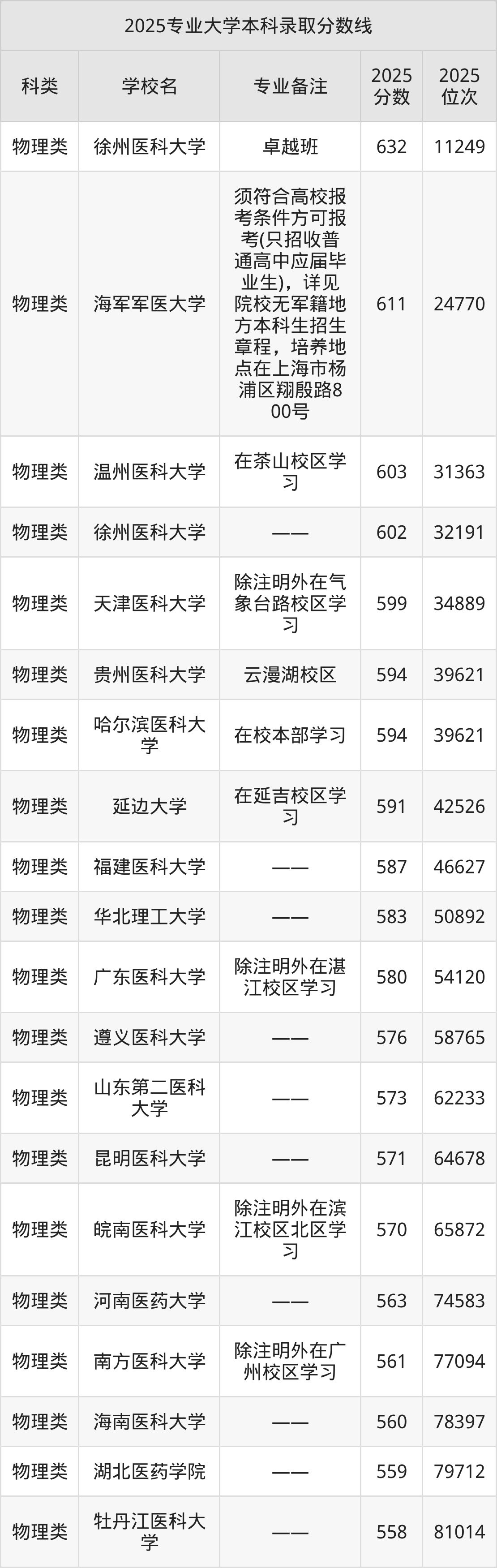 下面按照分数线高低展示麻醉学专业院校录取详情: