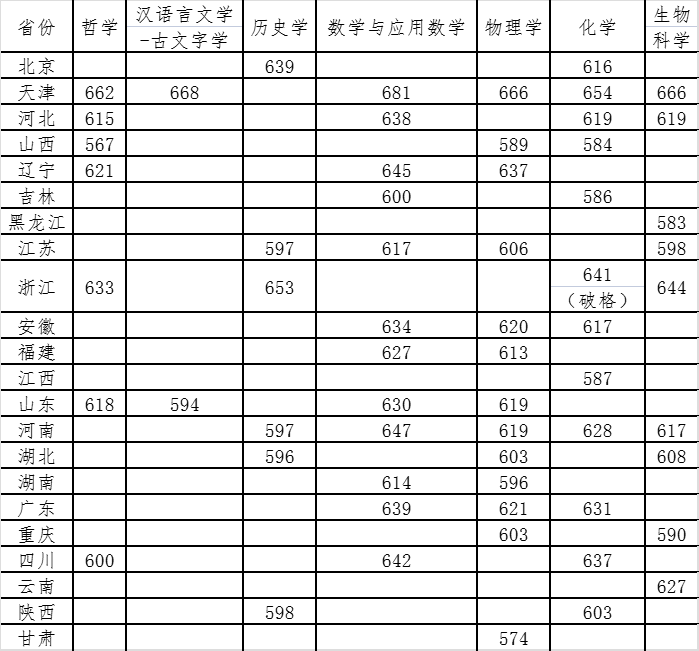 南开大学2022年强基计划入围分数线全国各省市汇总: