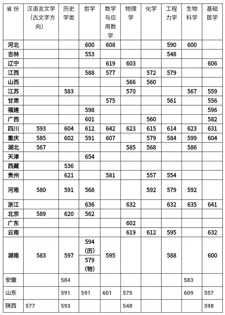 四川大学2022年强基计划入围分数线各省市汇总: