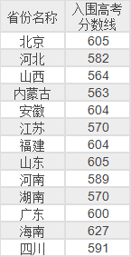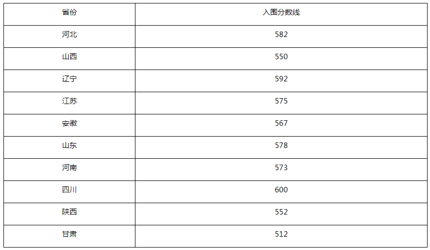 省份 | 入围分数线 |