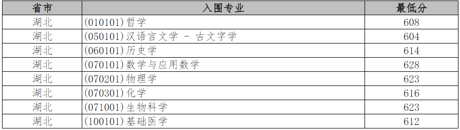 武汉大学2022年强基计划入围分数线全国各省市汇总: