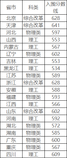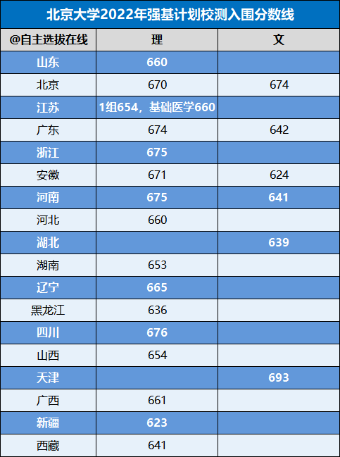 北京大学2022年强基计划入围分数线各省市汇总: