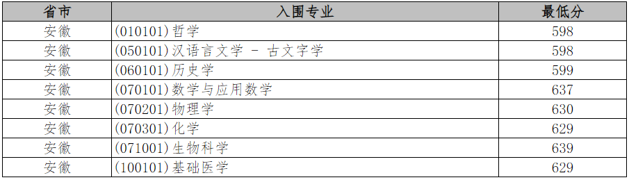 中国科学技术大学2022年强基计划入围分数线各省市汇总: