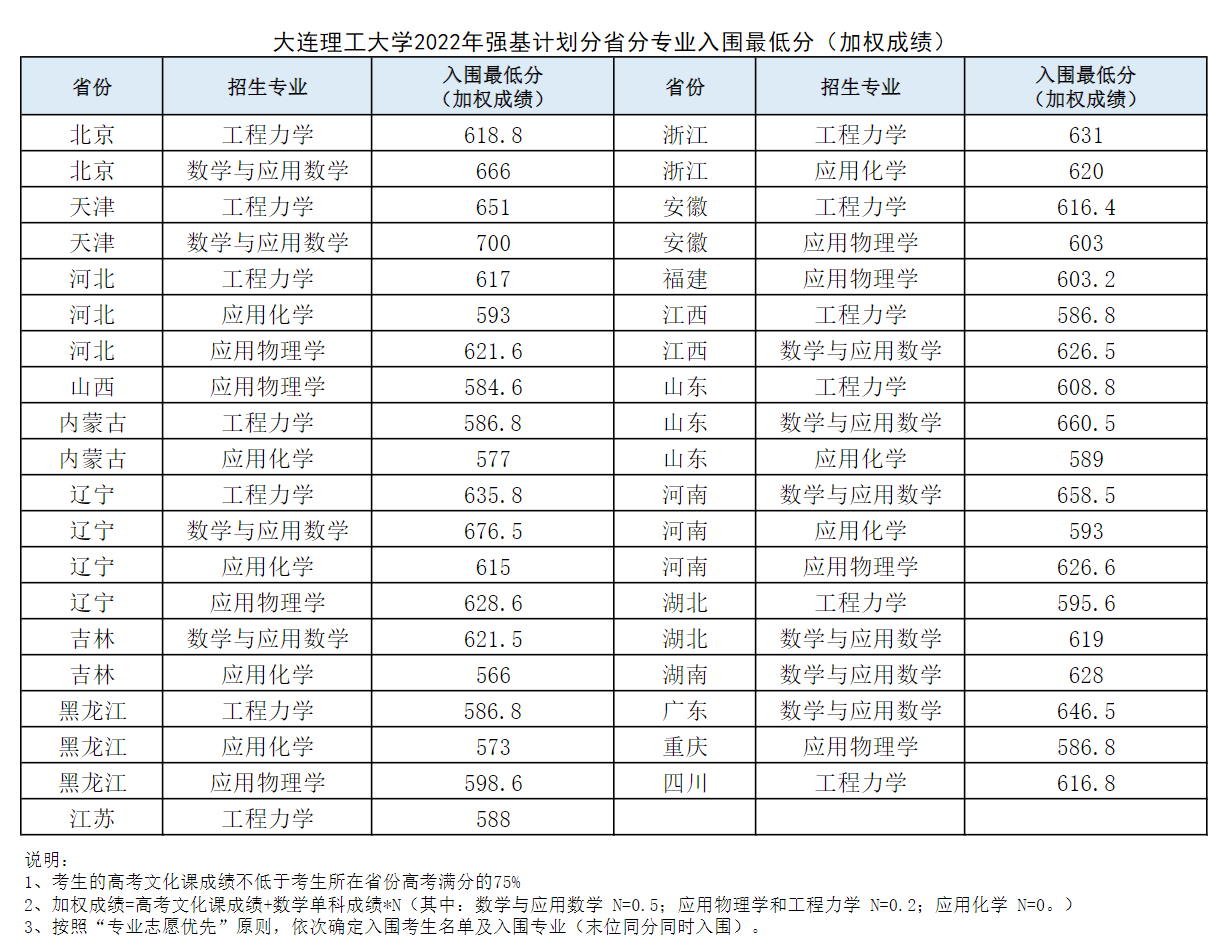 大连理工大学2022年强基计划入围分数线全国各省市汇总: