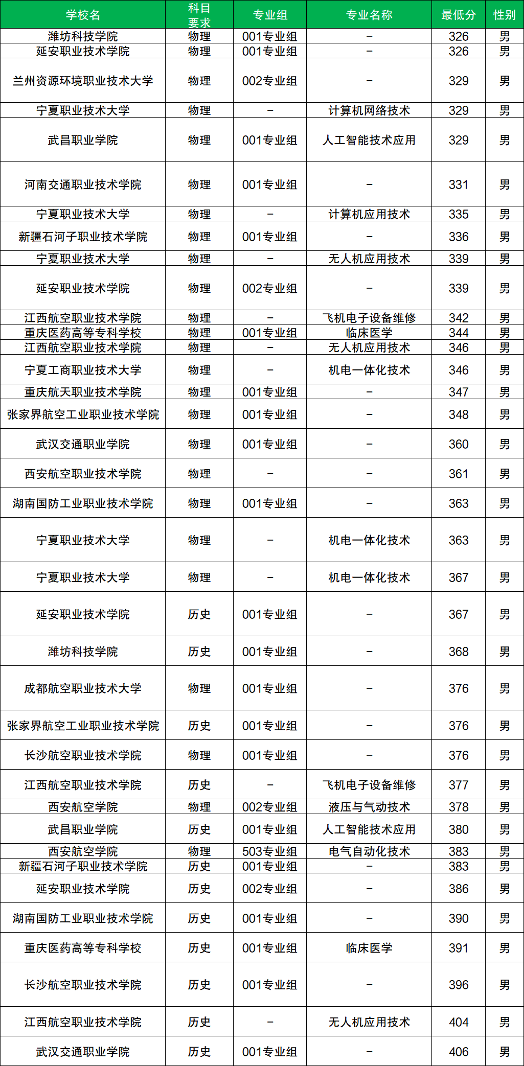 江西航空职业技术学院:物理类最低342分