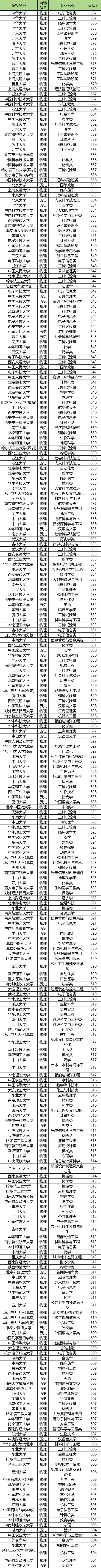 各个大学国家专项最低分数线是: