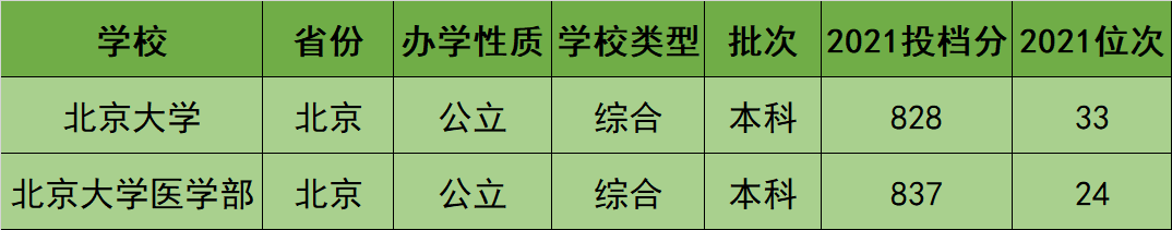 下表为北京大学在海南省2021年的录取分数线以及最低录取位次排名。