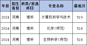 2024年南阳师范学院地方专项计划在河南录取最低分理科为518分,理科收分最低的专业为化学(师范)和生物科学(师范)。