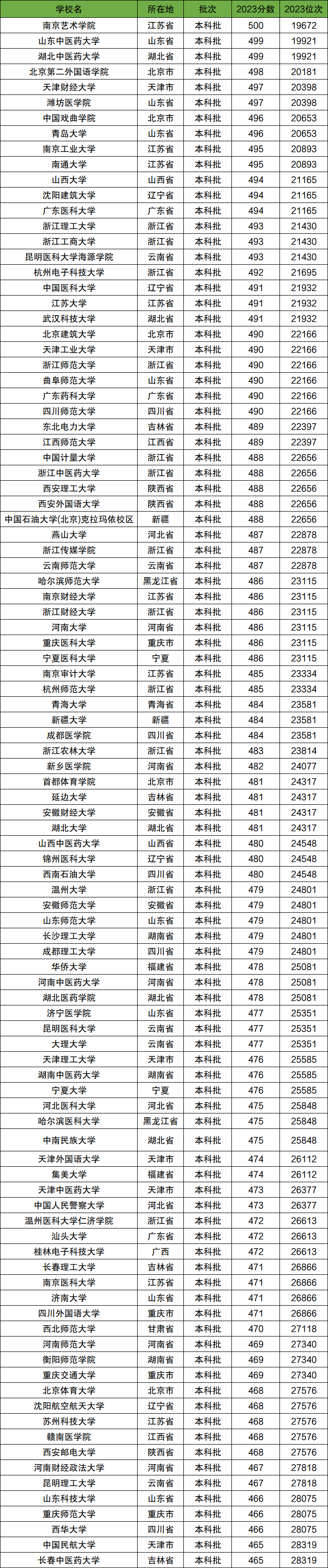 | 学校名 | 2023分数 | 2023位次 |