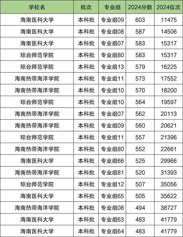 2025年海南省前三名二本大学在海南省招生分数线在603分~483分之间,最低位次在11475~41779名。如琼台师范学院最低507分、海南热带海洋学院最低494分、海南医科大学最低483分。