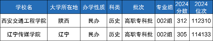 可以看到,分别有西安交通工程学院、辽宁传媒学院。