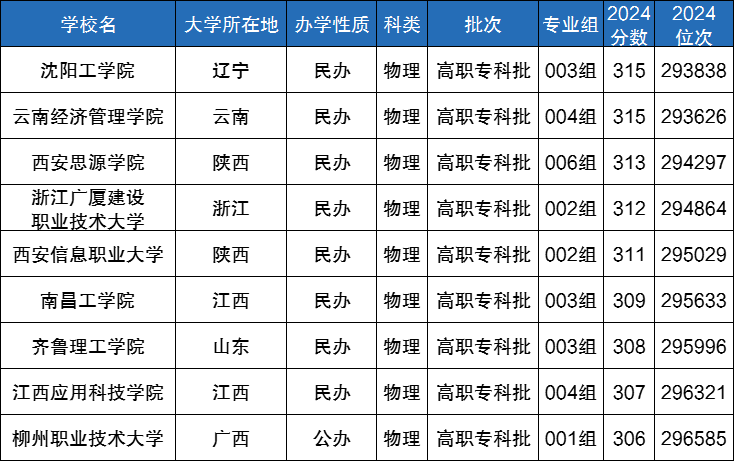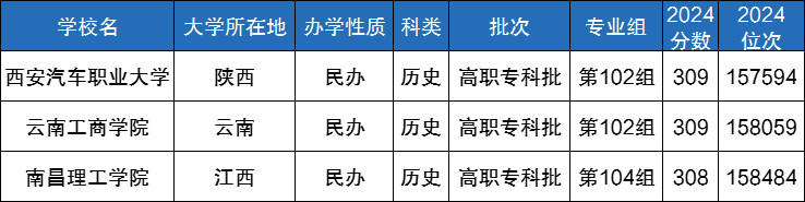 2024年江西省的310分左右(305-315分)能上的本科大学一共有3所,均为高职专科批次录取的院校。