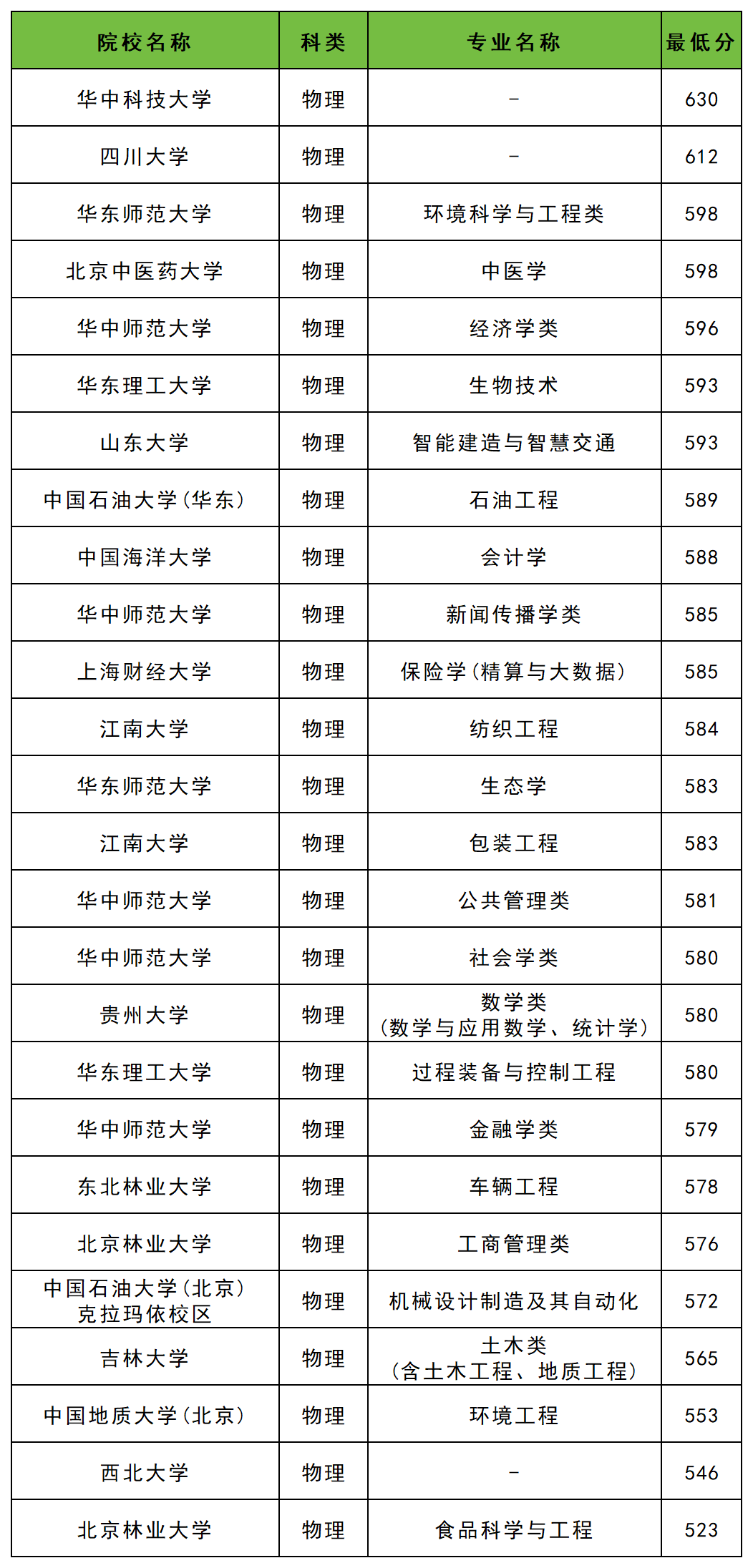 | 院校名称 | 专业名称 | 最低分 |
