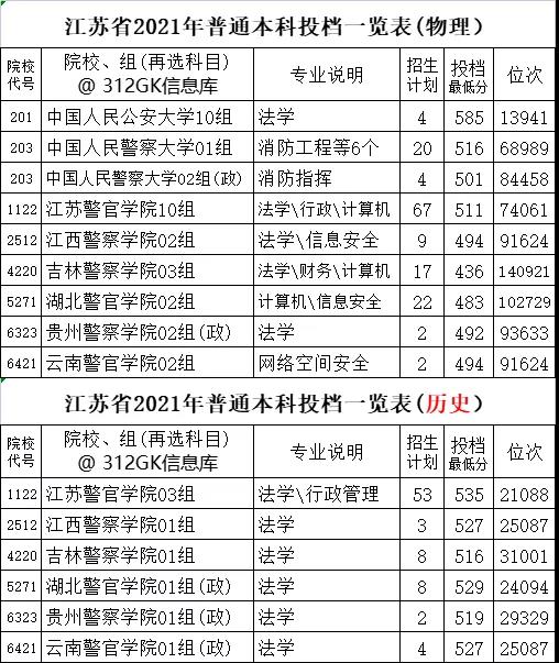 5所部属高校,其中:4所面向江苏提前批次招生364人(物181人/史183人);1所中国人民警察大学在江苏提前批次无招生。