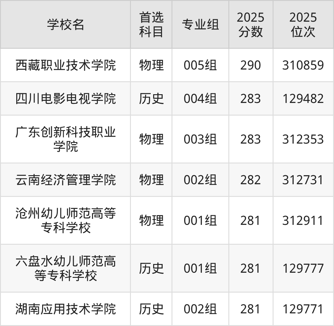 就2025年而言,传统高考省份中,新疆专科最低分为280分(理科),分数在286分以下。