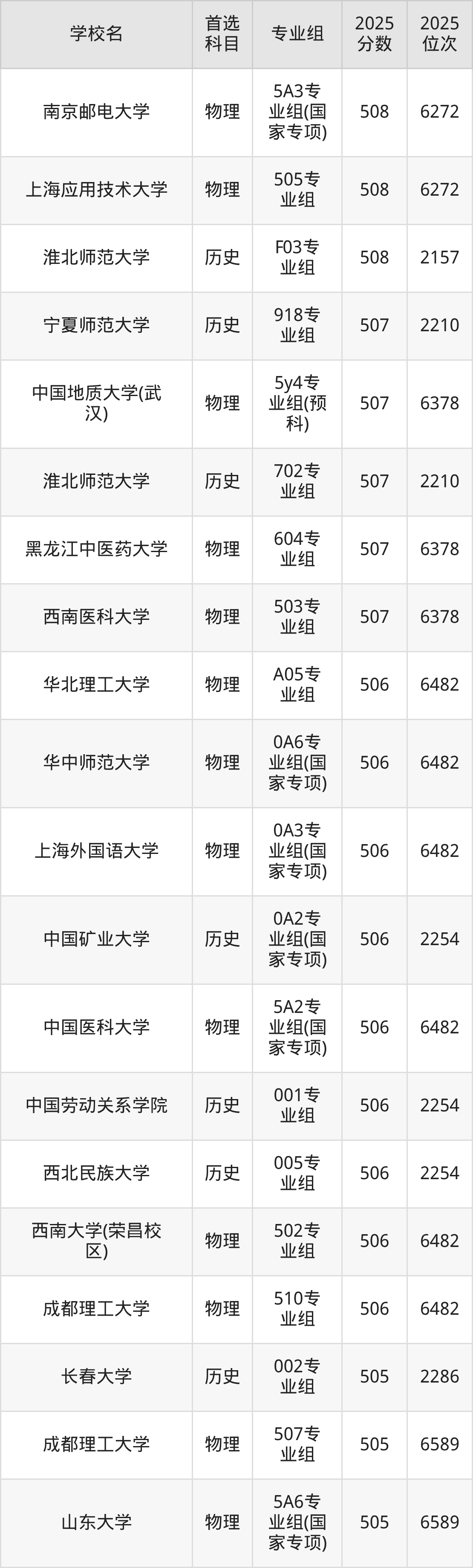 而在非211院校中,值得推荐的非单列专业组有中国医科大学(105组507分),这些均为国家重点大学。