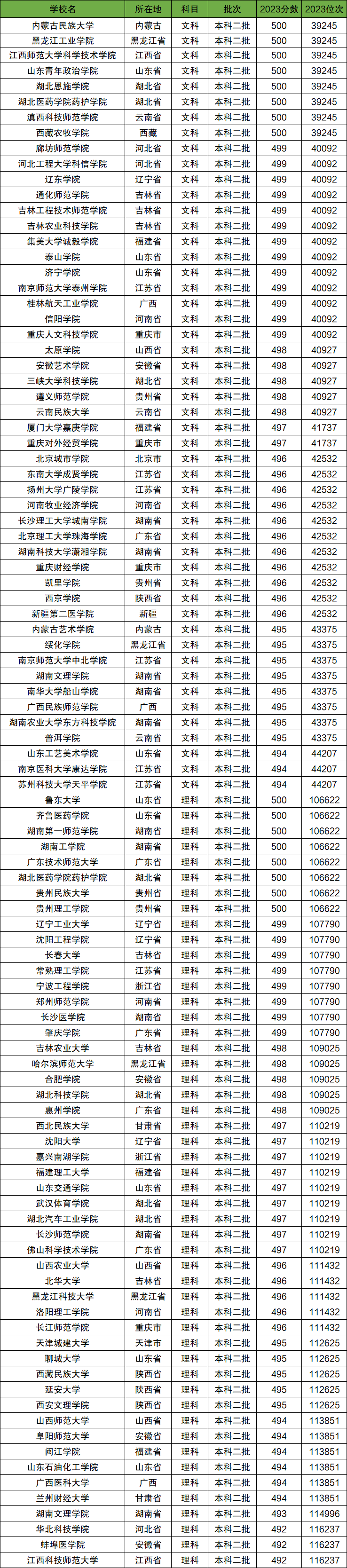 以下为2023年在四川省450到500分的全国大学名单(四川省以外)。