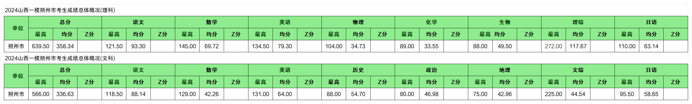 下面是朔州市考生文理科成绩总体概况: