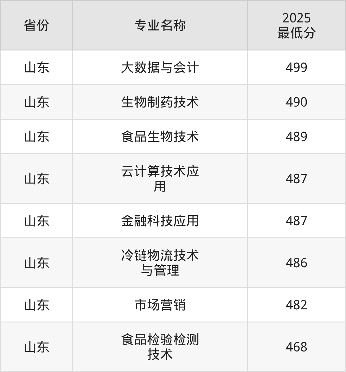 注:上述为专业录取最低分,有地区报考限制,并非每个地区的考生报考该专业都是这个分数,考生需查阅本省实际录取分数。下面是2025年山东商业职业技术学院3+2专本贯通培养各专业在山东省招生的分数情况: