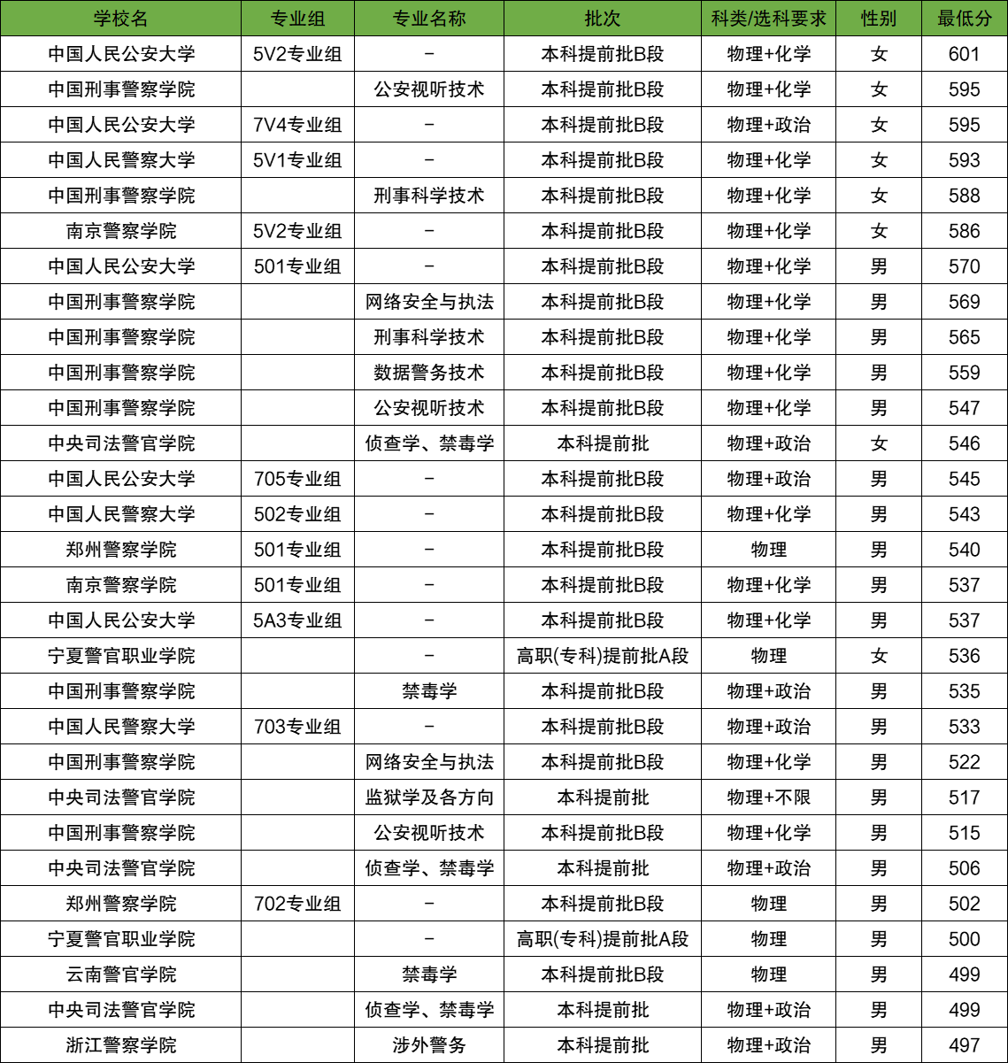 2025年宁夏警校物理类录取分数线在497分-601分之间,录取分数线最高的是中国人民公安大学,2025年最高投档线为601分;录取分数线最低的是浙江警察学院,2025年最低投档线为497分。