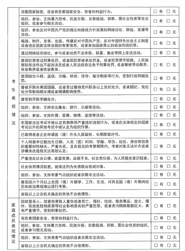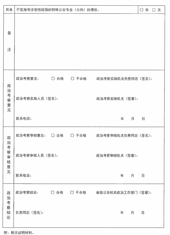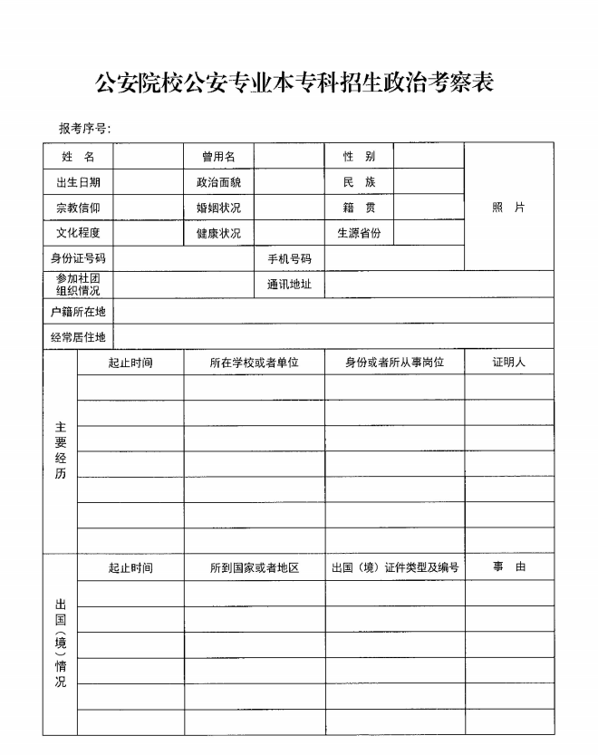 警校政审表: