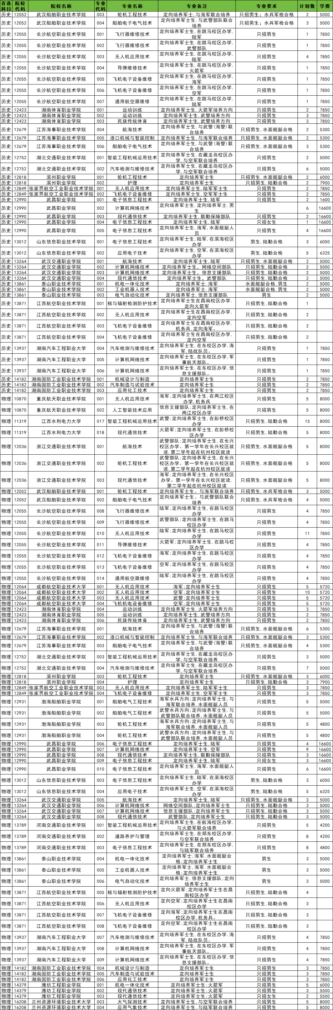 专业名单:船舶电子电气技术、飞行器维修技术、航海技术、港口机械与智能控制等。