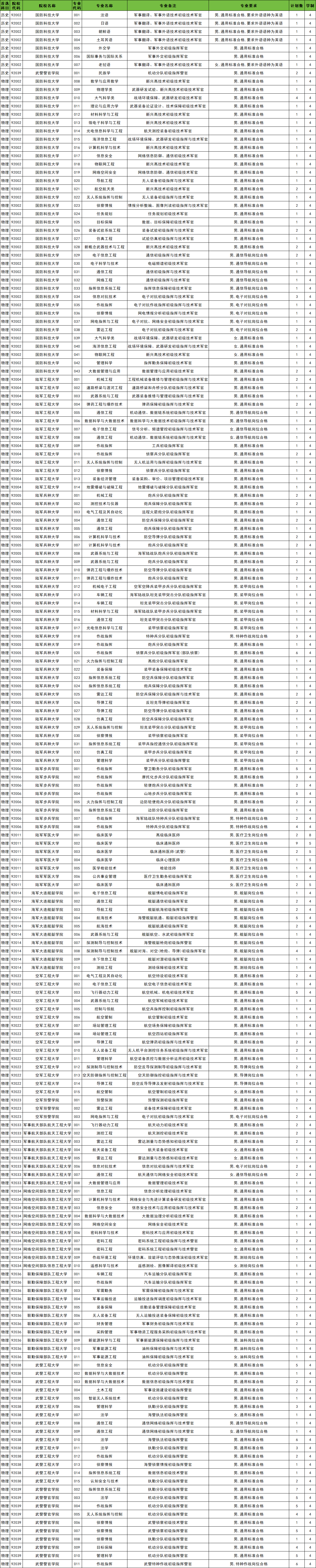 院校名单:国防科技大学、陆军兵种大学、空军工程大学、武警工程大学、陆军工程大学等。