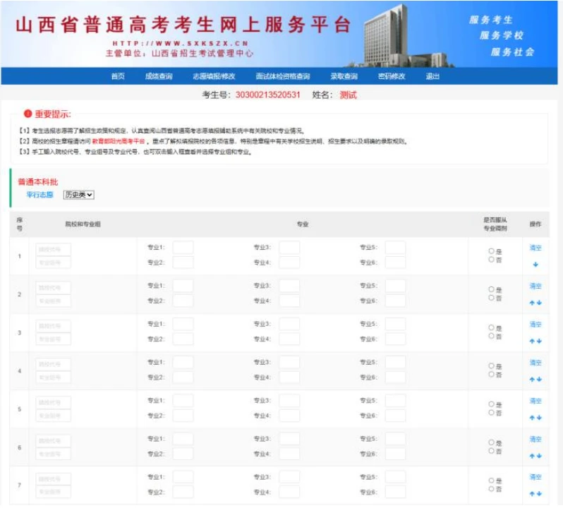 二、2025年山西高考志愿填报样表