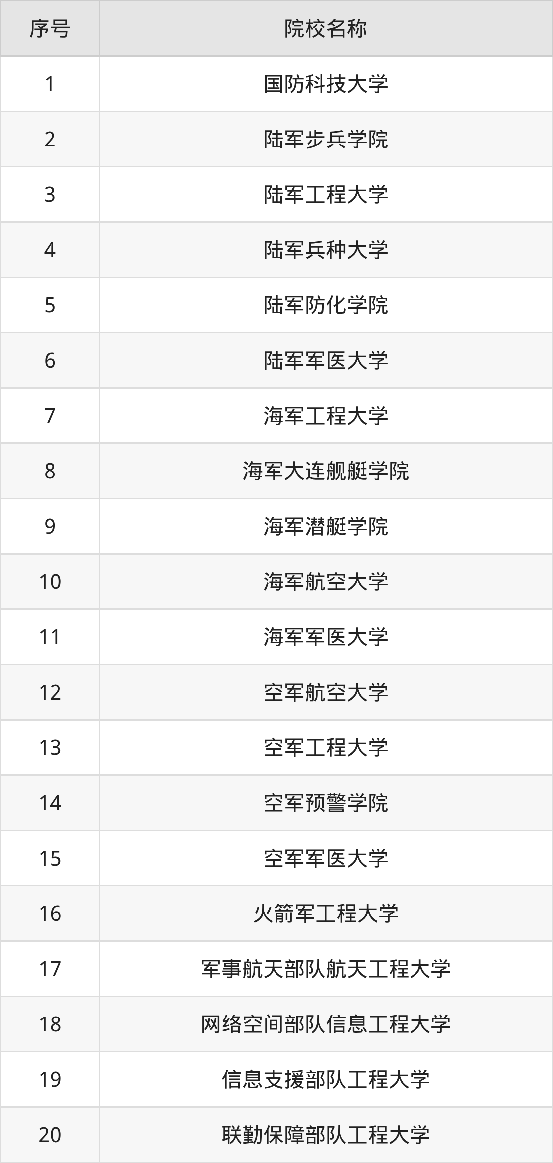 辽宁省军校招生学校一共有22所,具体名单如下。