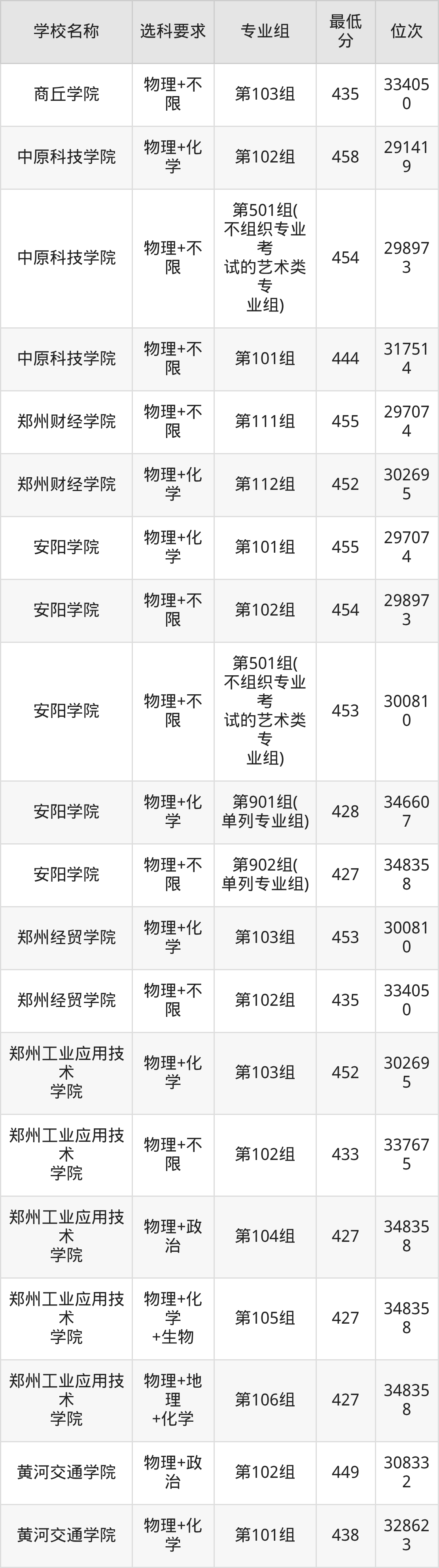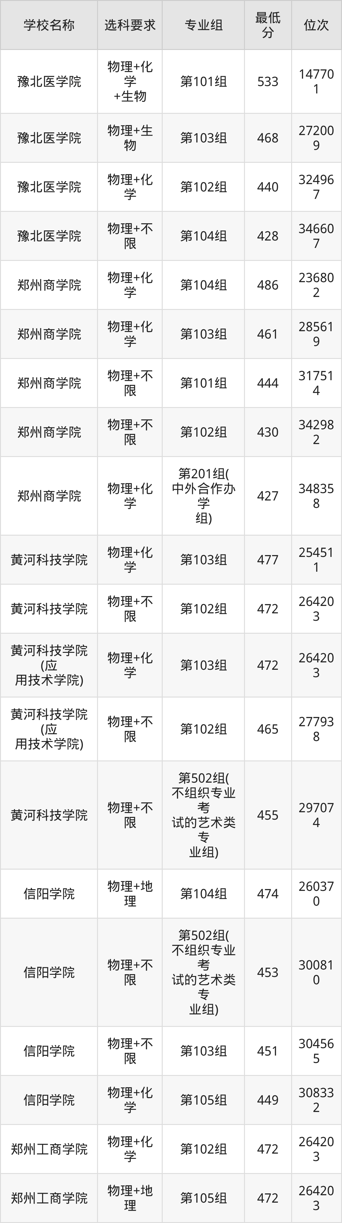 | 郑州工业应用技术 学院 | 历史+不限 | 第101组 | 484 | 77434 |