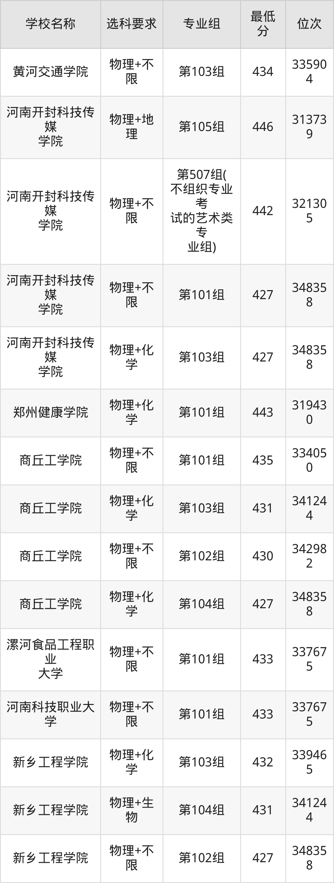 | 河南开封科技传媒 学院 | 历史+不限 | 第102组 | 505 | 58484 |