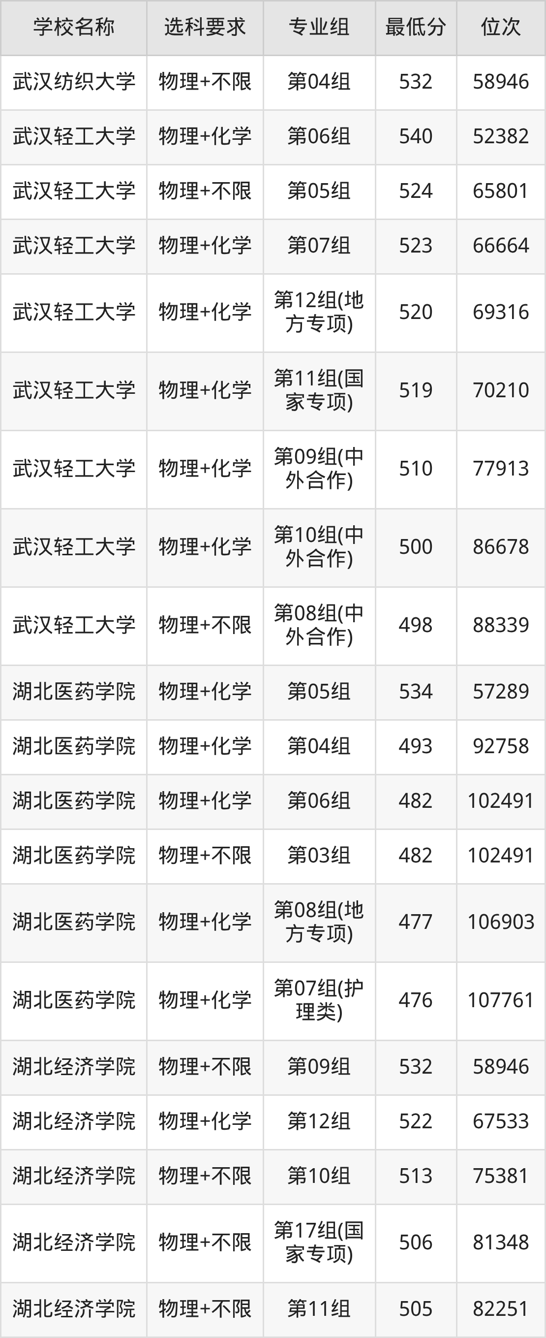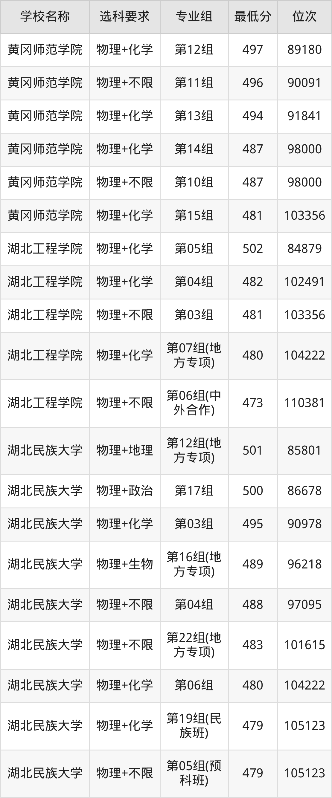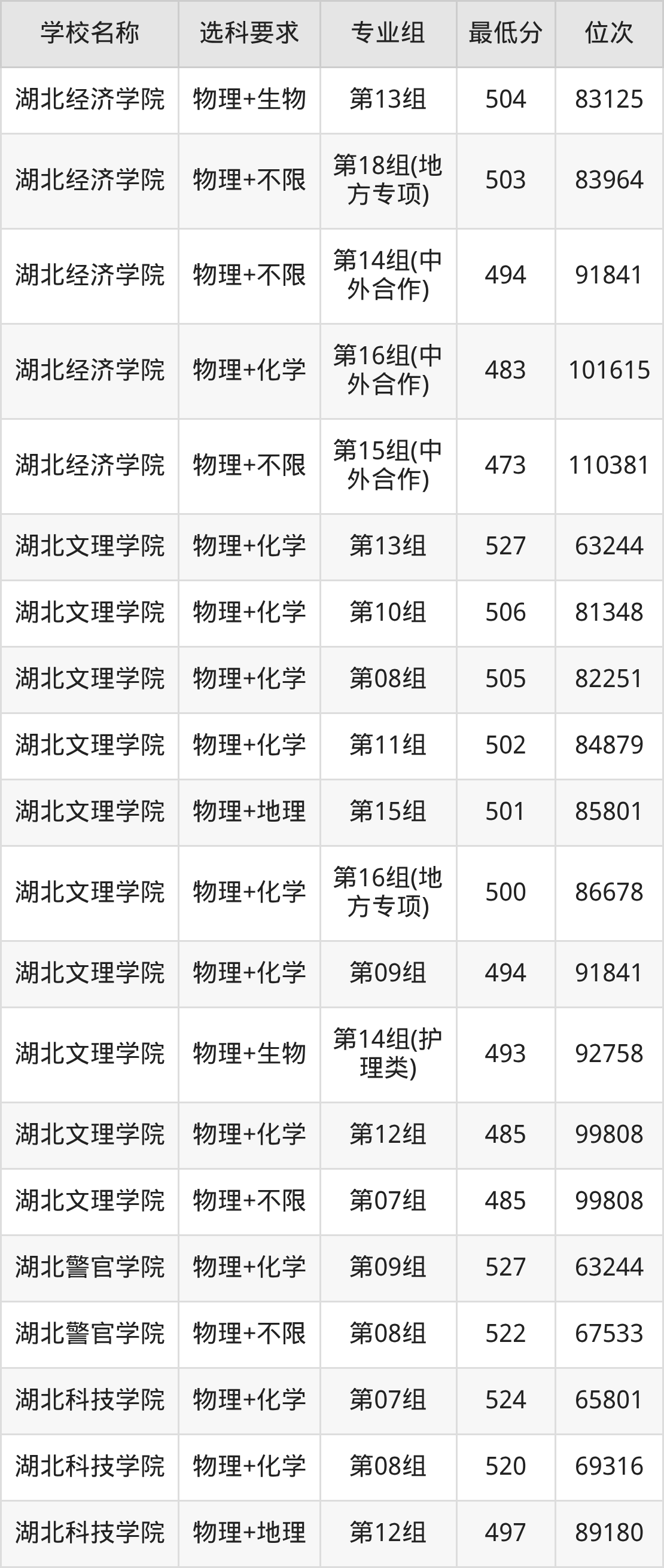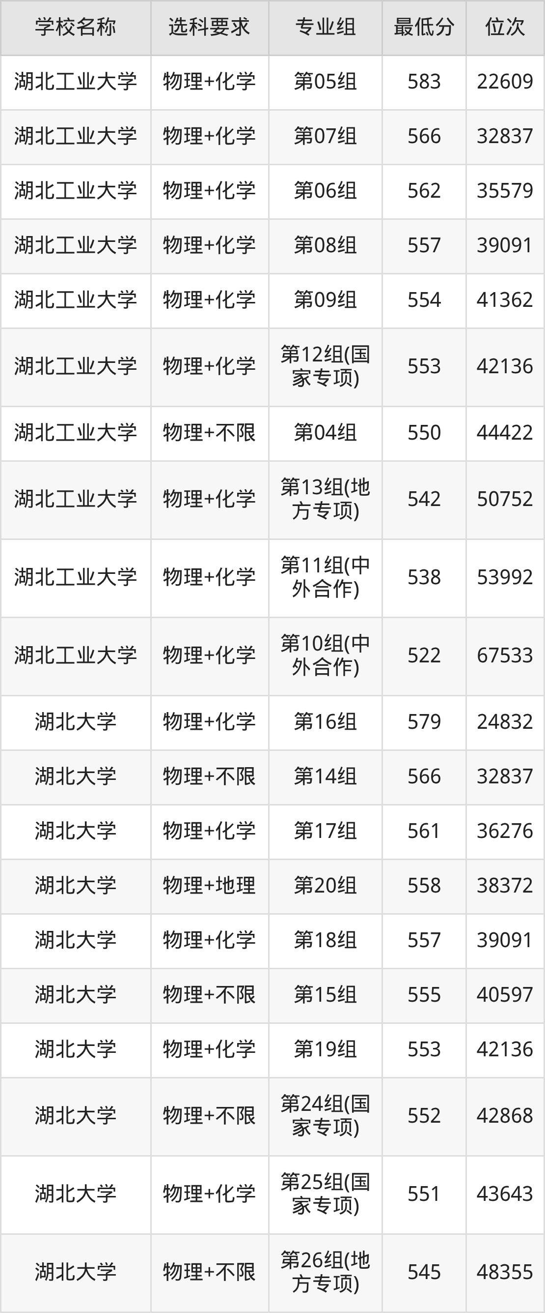 二、湖北公办本科录取分数线:物理