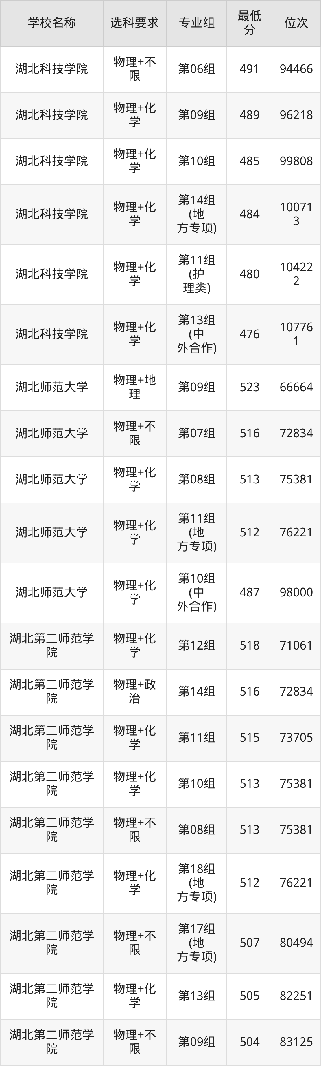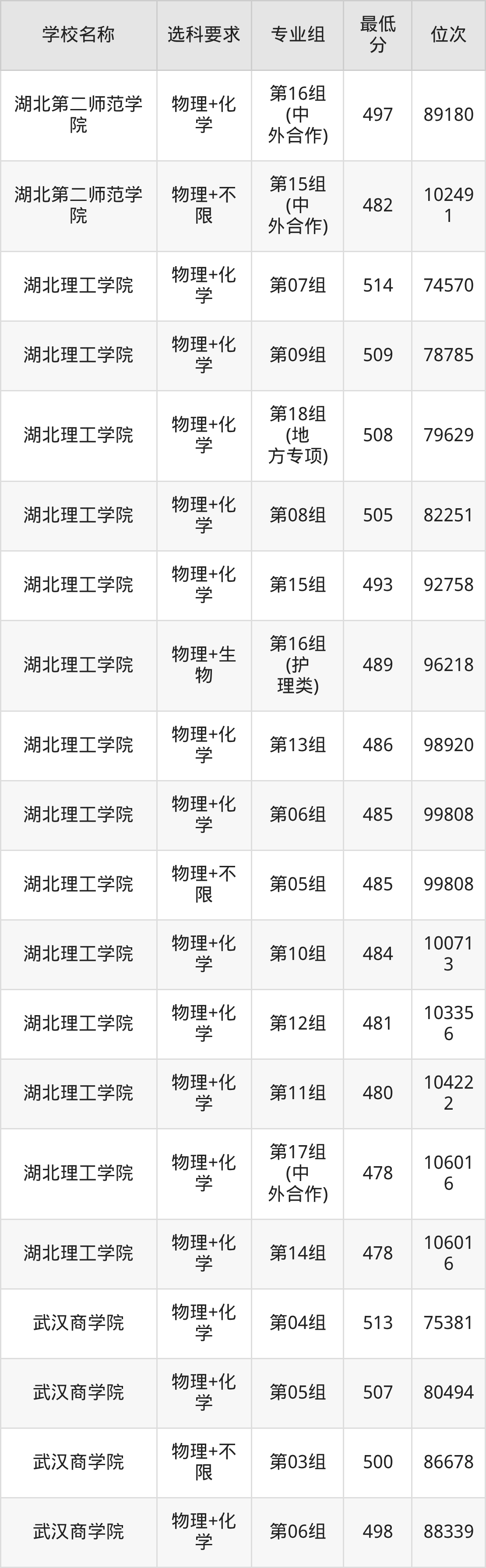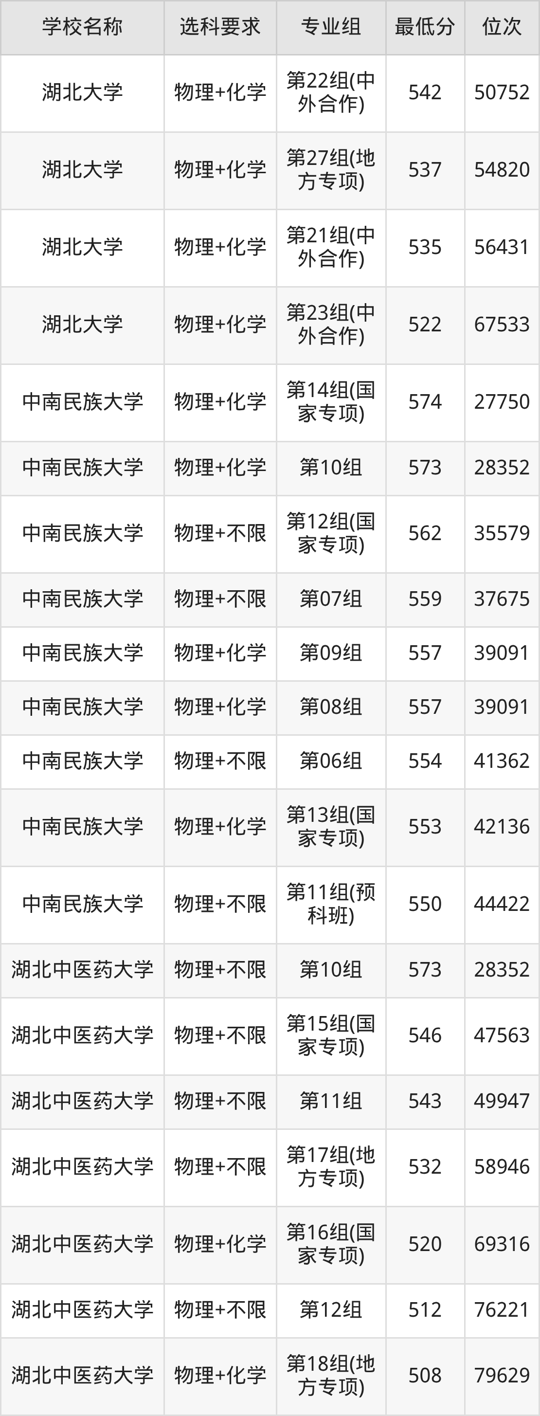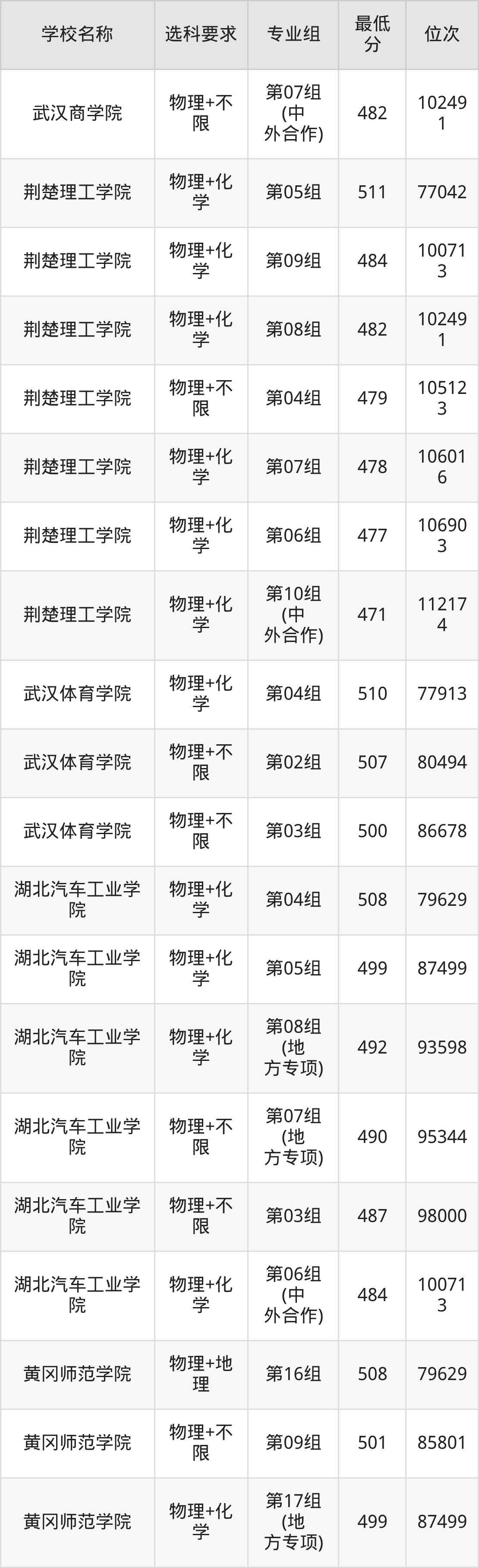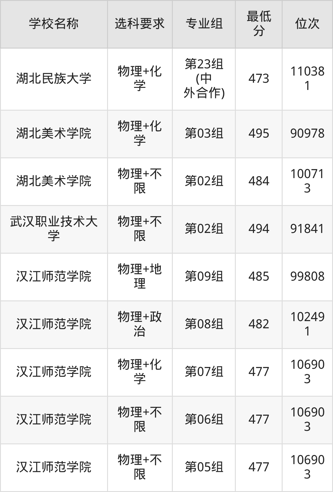 二、湖北公办本科录取分数线:物理