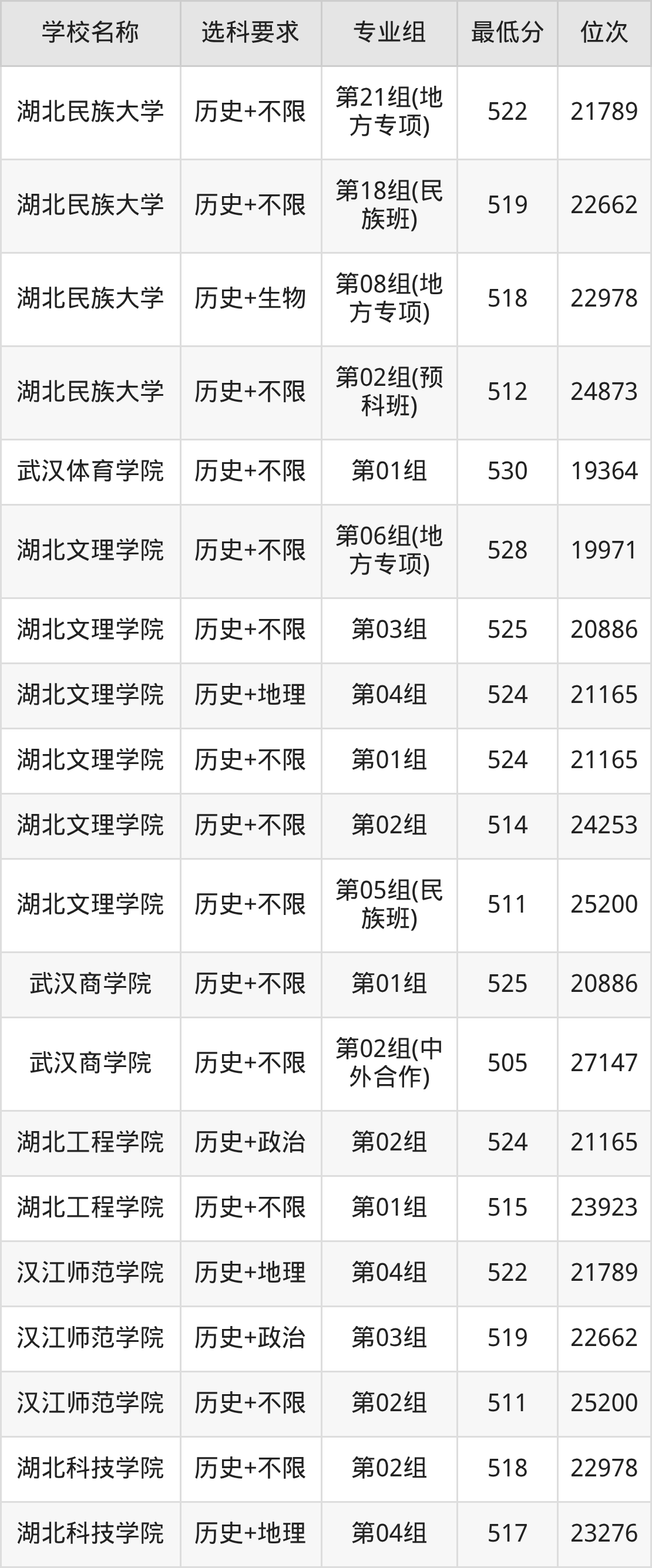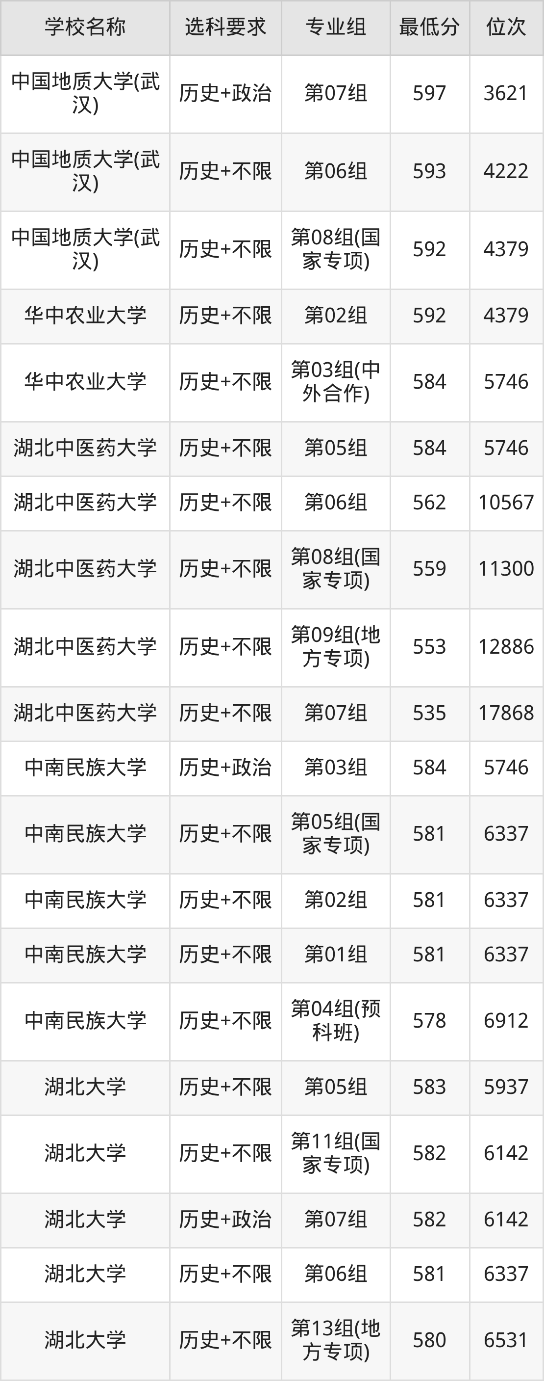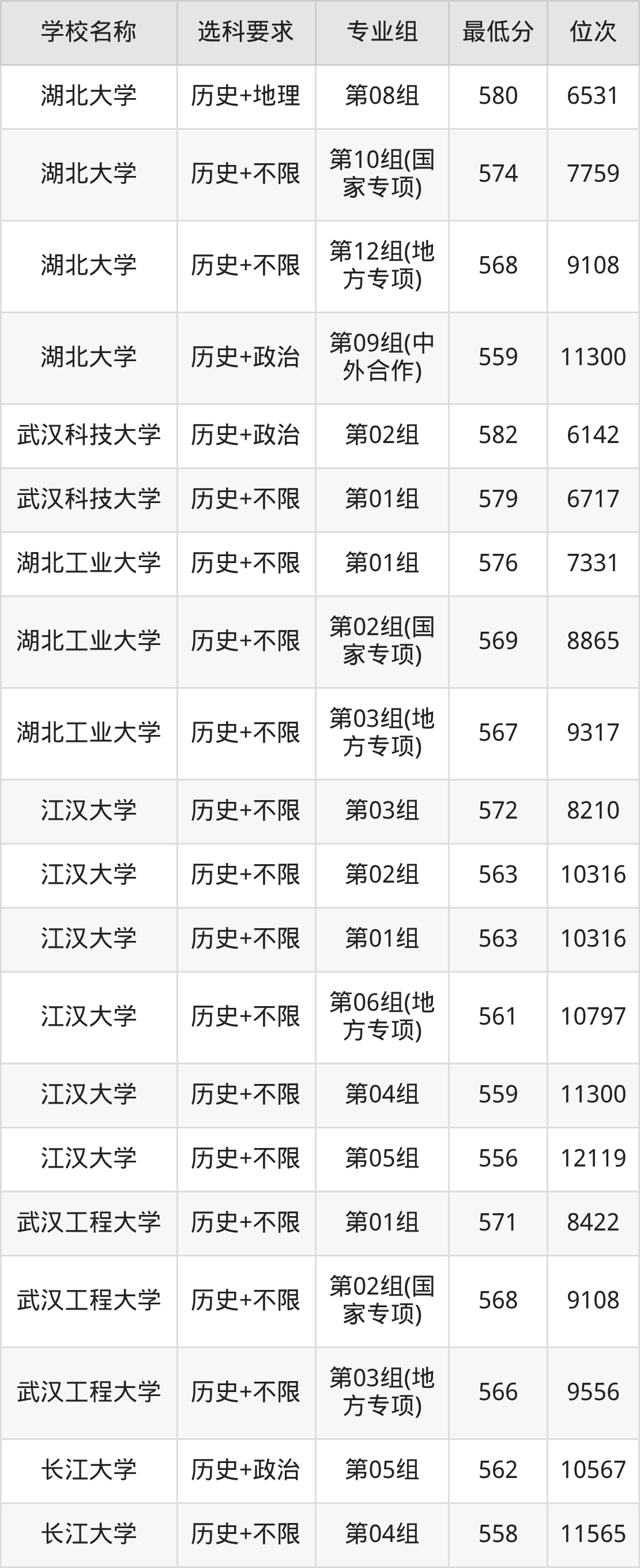 三、湖北公办本科录取分数线:历史