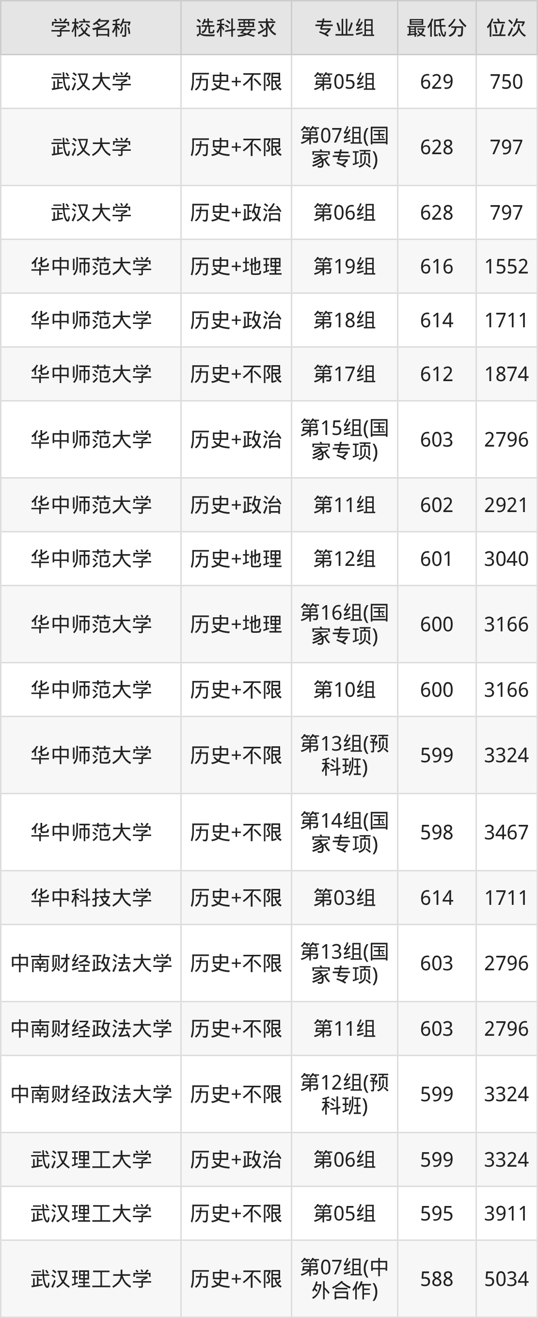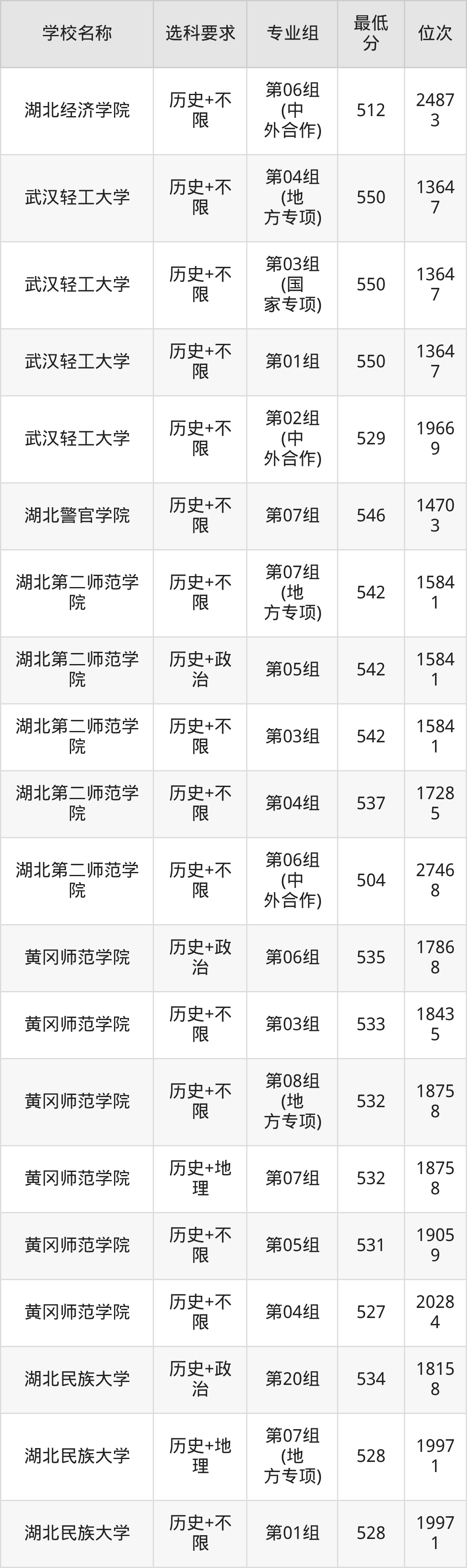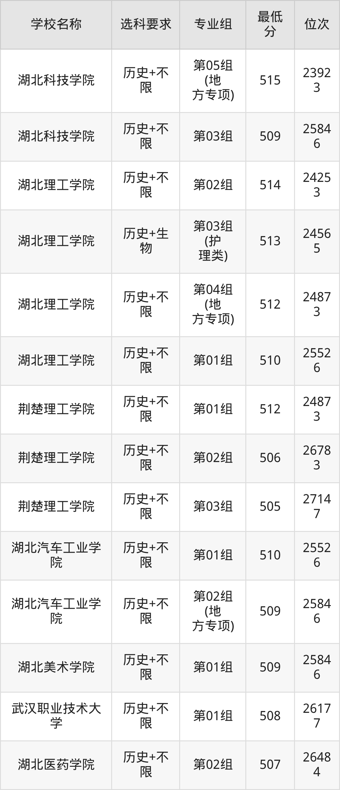 三、湖北公办本科录取分数线:历史
