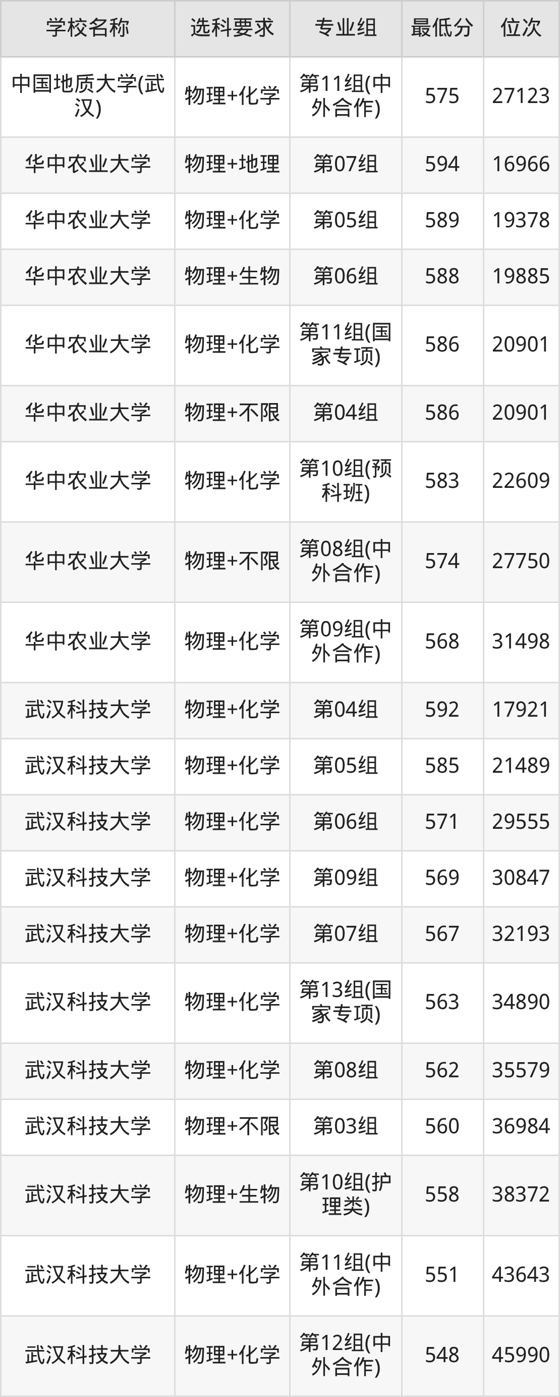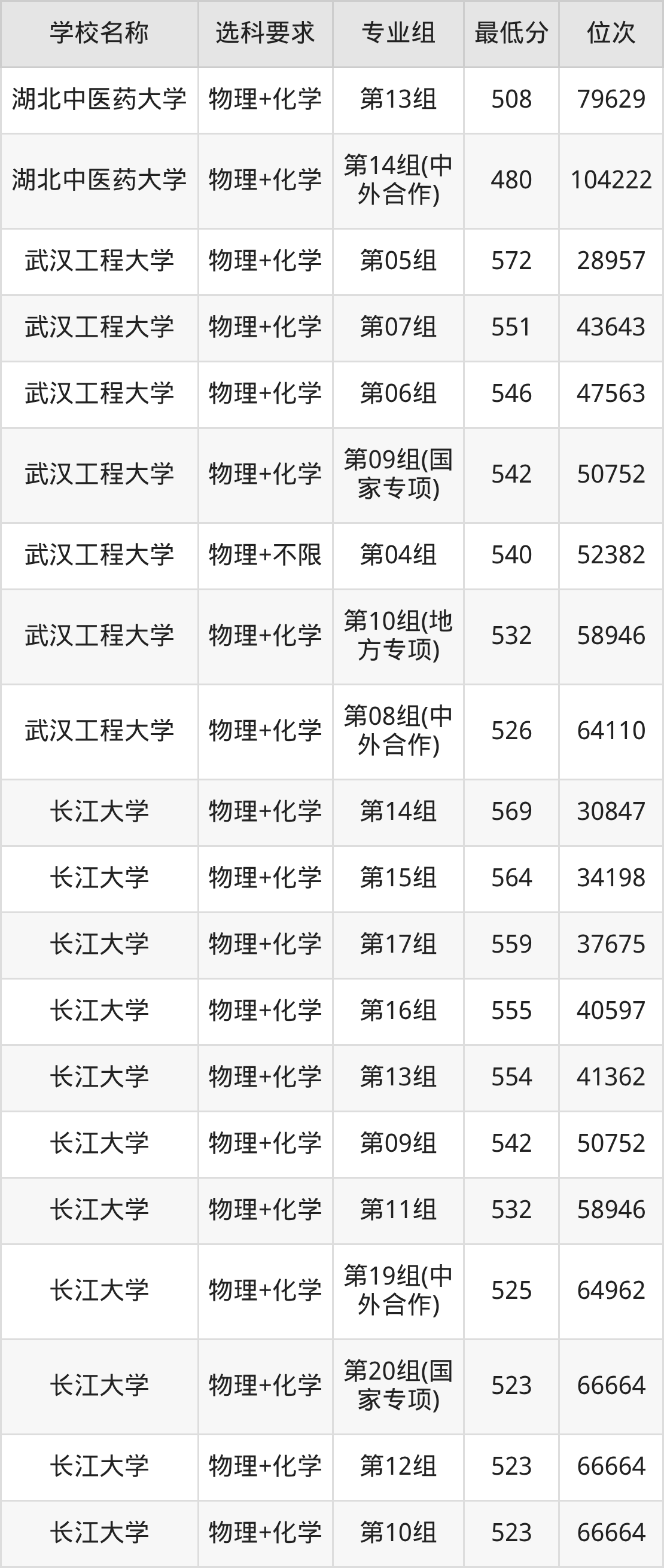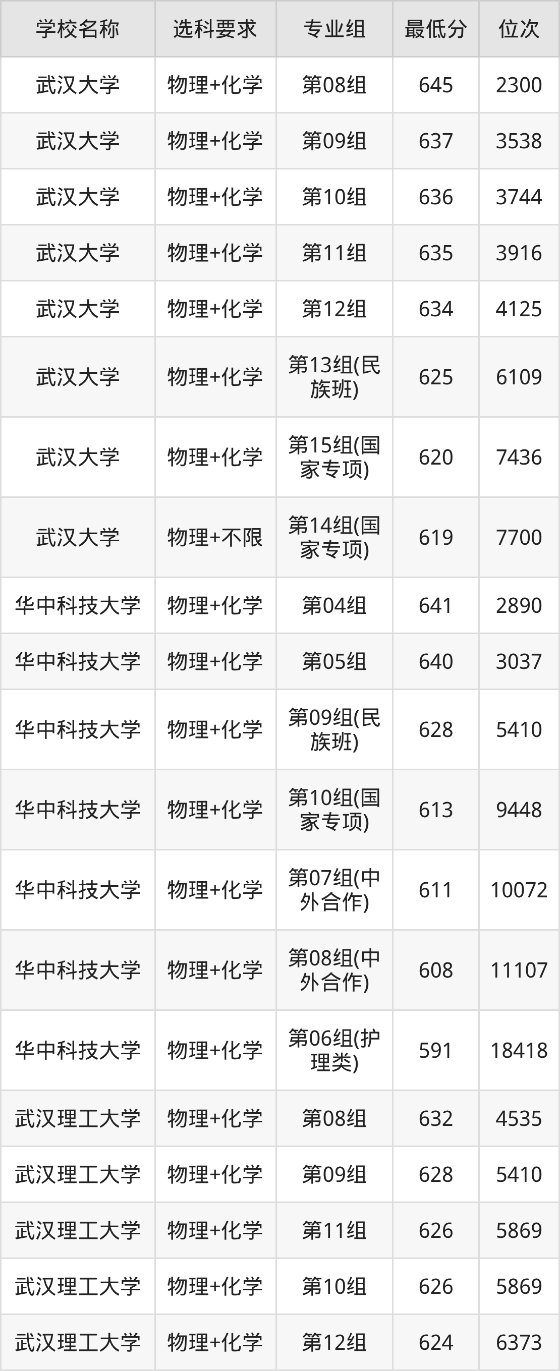 物理录取分数线一览表: