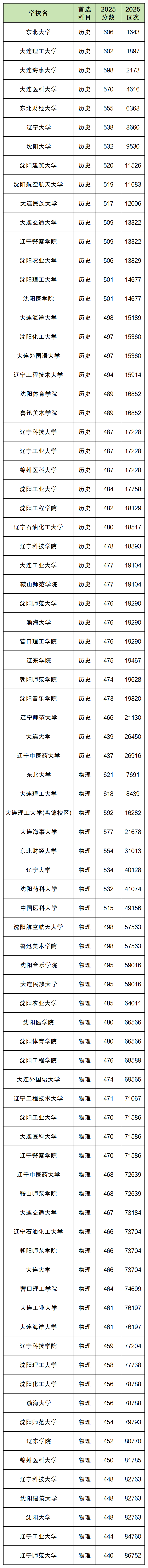 2025年辽宁公办本科大学在辽宁省内的最低分数线: