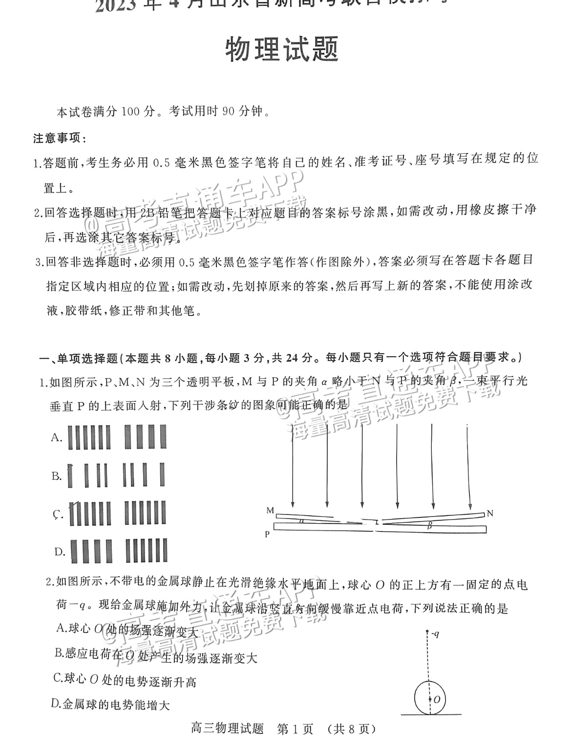 济南二模2023是济南是较为重要的考试,济南2023高三二模安排在4月19日举行,在济南二模2023结束之后,本期将整理济南二模2023物理真题及参考答案,希望同学们通过济南二模2023的试题答案,及时知晓物理成绩!