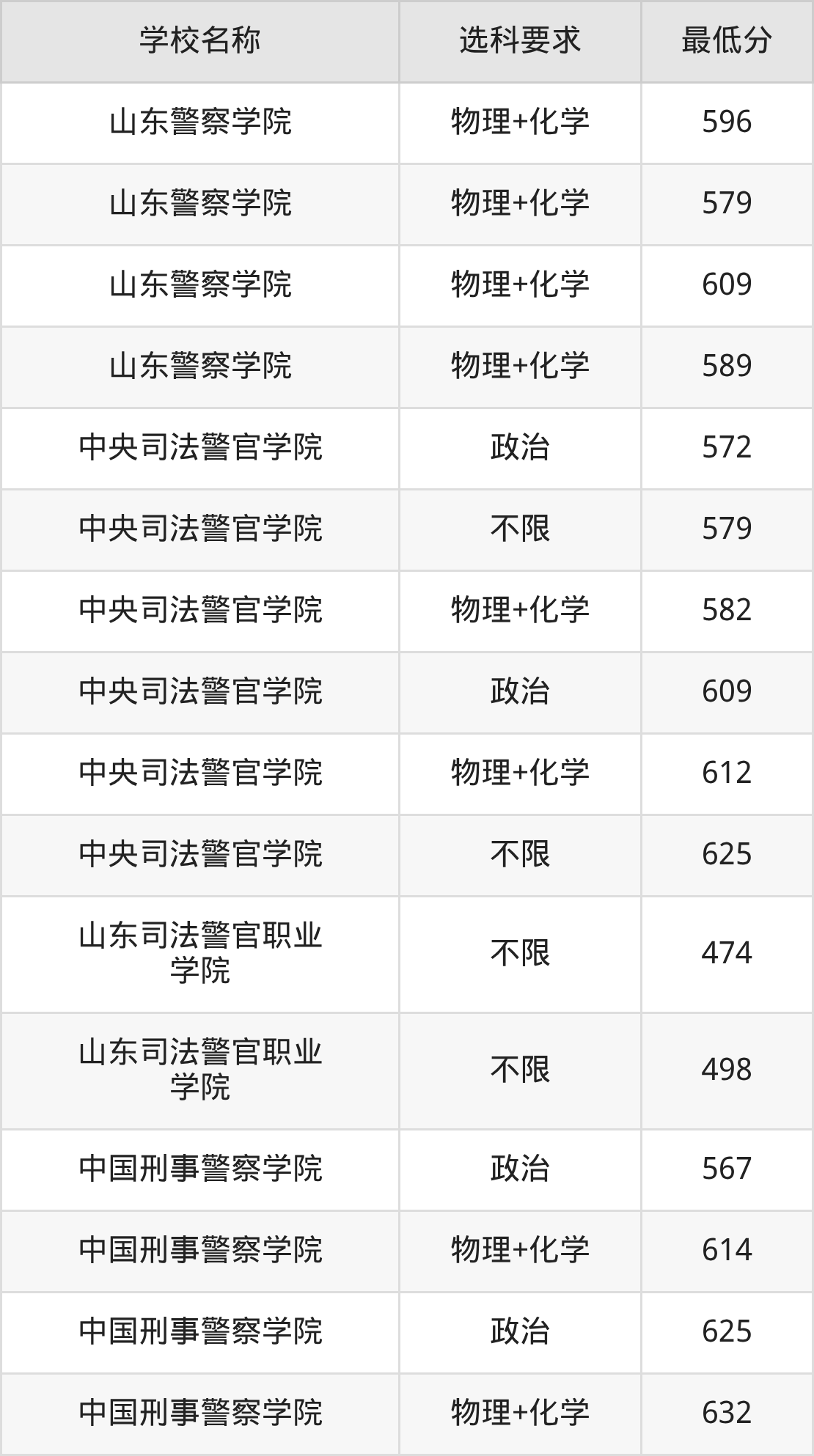 2025年山东警校录取分数线:最低474分,各学校录取分数线不同,如:山东警察学院525分,中央司法警官学院572分,山东司法警官职业学院474分等,完整名单及分数线详情如下。